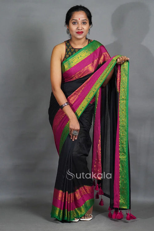 Black Saree with Traditional Jacquard Border & Tassels
